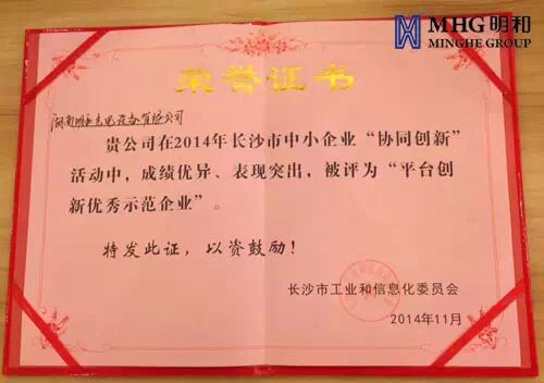 长沙市中小企业“协同创新”活动长沙市工信部推出的转型升级系列活动,出资聘请专业团队,为企业提供技术、创新资源,协同多方参与,帮助企业开发新技术、新产品,实现企业的持续、健康、快速成长。在此次活动中,明和集团副总经理常青女士等10人荣获了“平台创新优秀学员”称号。